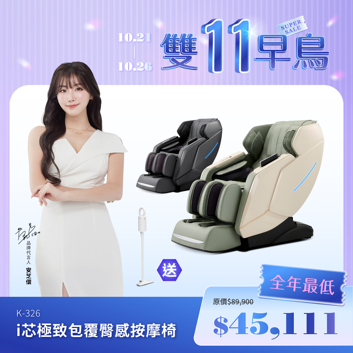 K-326-SP(雙11早鳥預購)i芯極致包覆臀感按摩椅原價89,900特惠價45,111 -