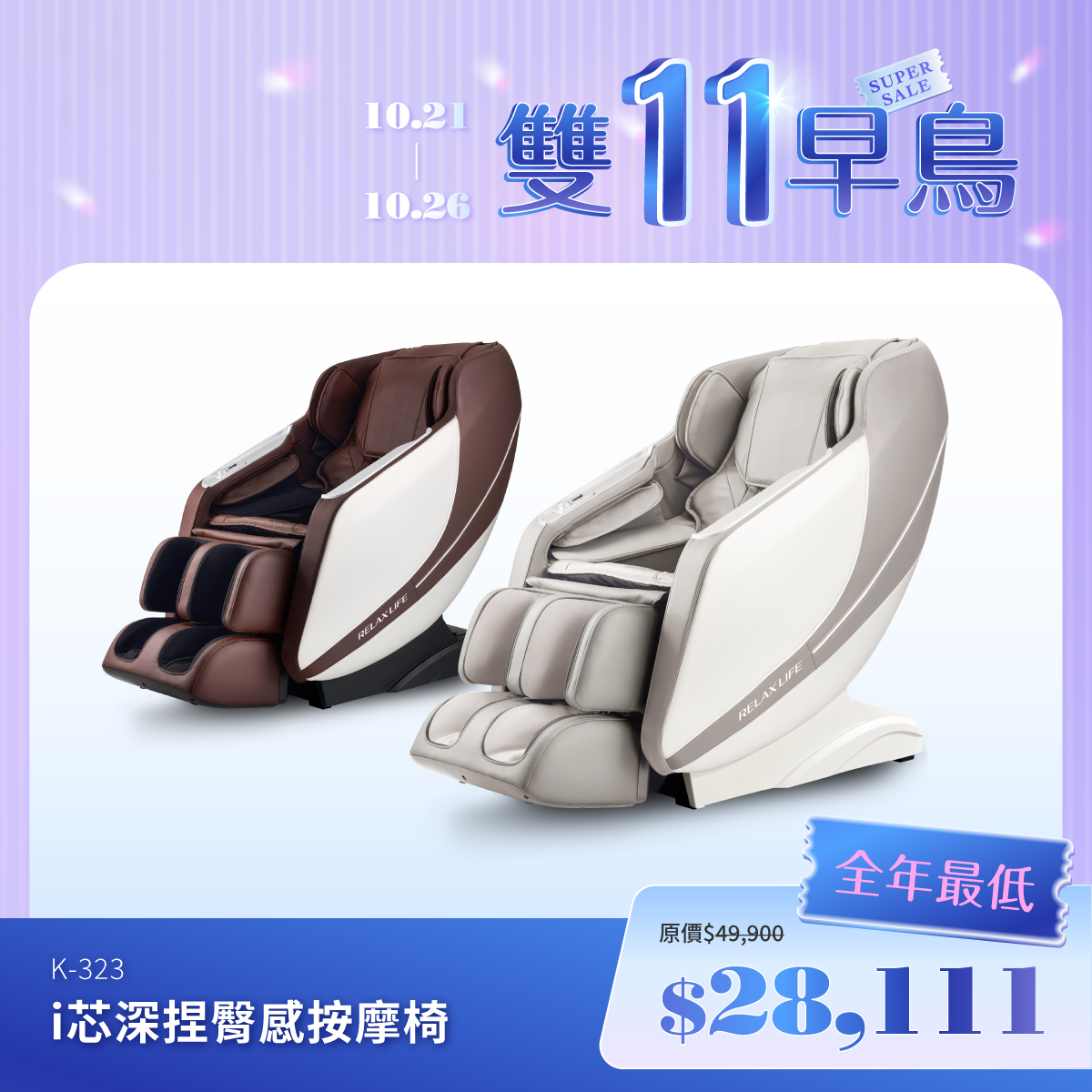 K-323-SP(雙11早鳥預購)i芯深捏臀感按摩椅原價49,900特惠價28,111 -