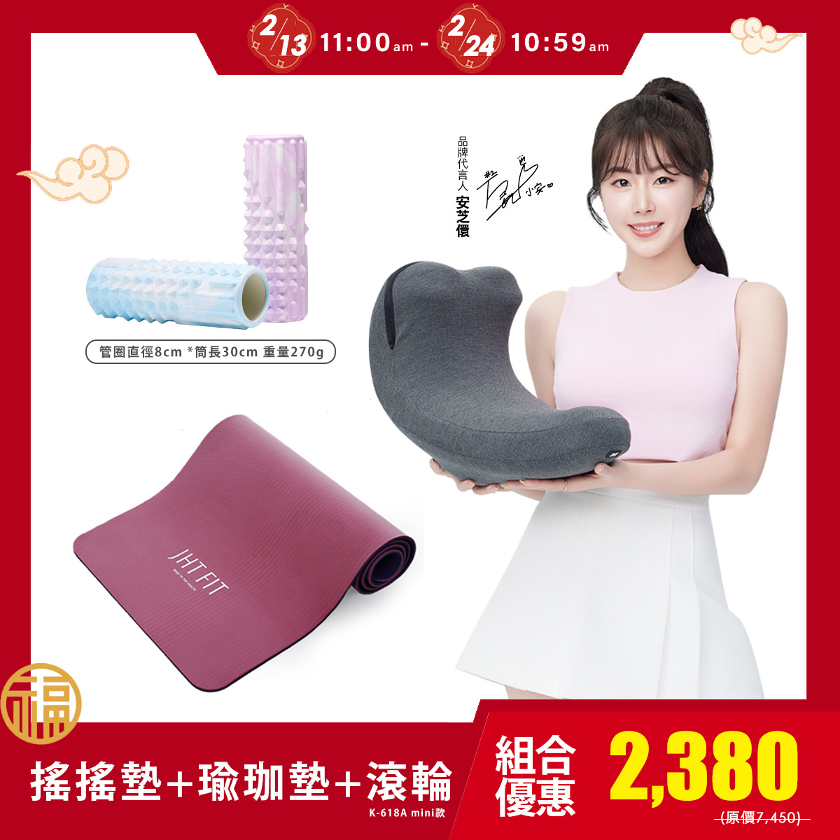 K-619+K-612+K-618A(優惠組合)骨盆伸展搖搖墊+雙色8mm瑜珈墊+瑜珈滾輪原價7,450特惠價2,380 -