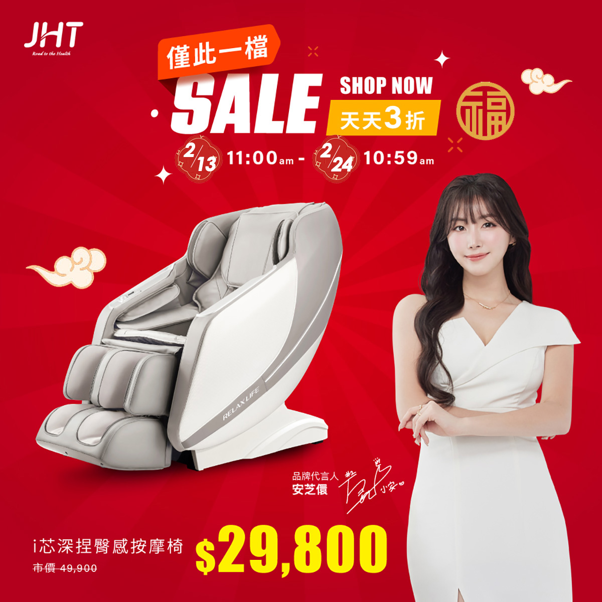 K-323i芯深捏臀感按摩椅(焦糖棕/奶霜灰)原價49,900特惠價32,600 -