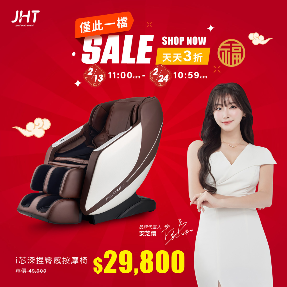 K-323-BNi芯深捏臀感按摩椅(焦糖棕)原價49,900特惠價29,800 -